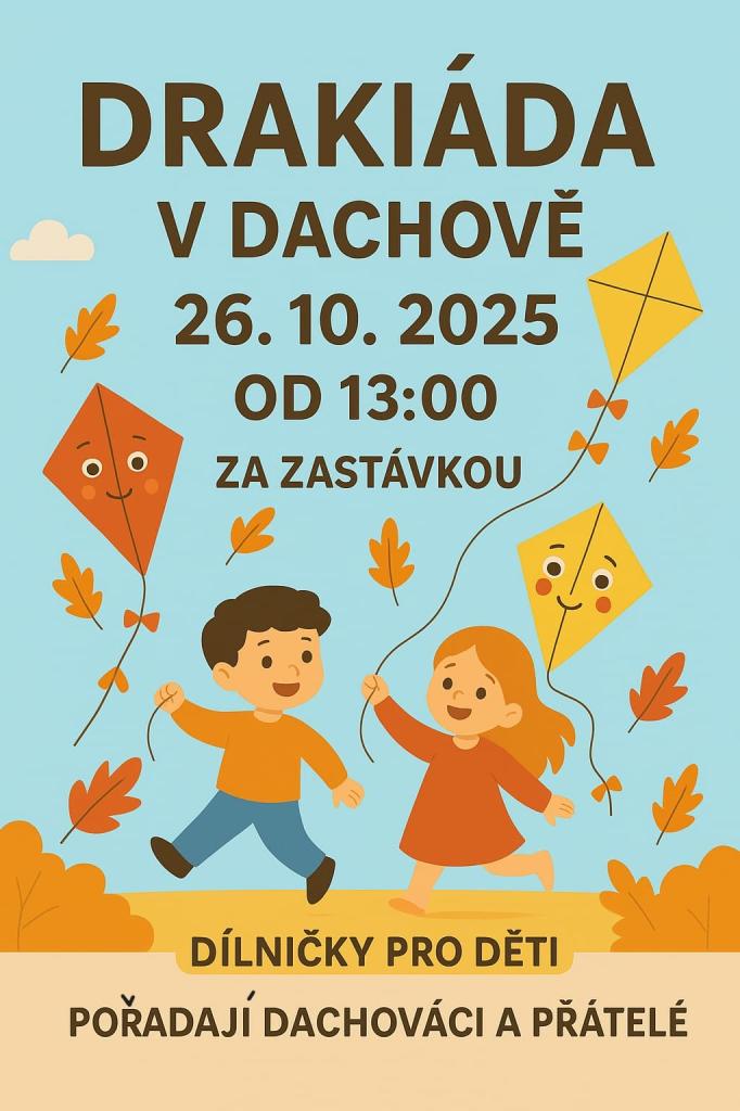 V neděli 26. října 2025 se v Dachově od 13 hodin uskuteční tradiční Drakiáda. Akce je zaměřena na zábavu pro všechny věkové kategorie a je doplněna o kreativní dílny.