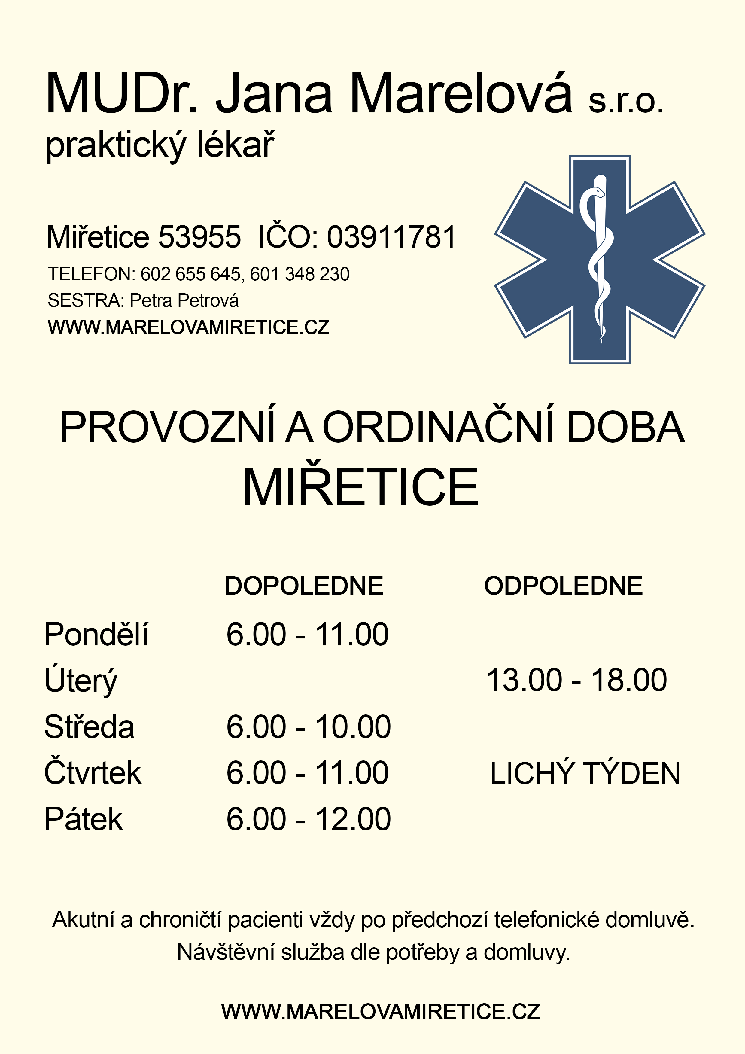 Mění od 1.1.2022 ordinační dobu